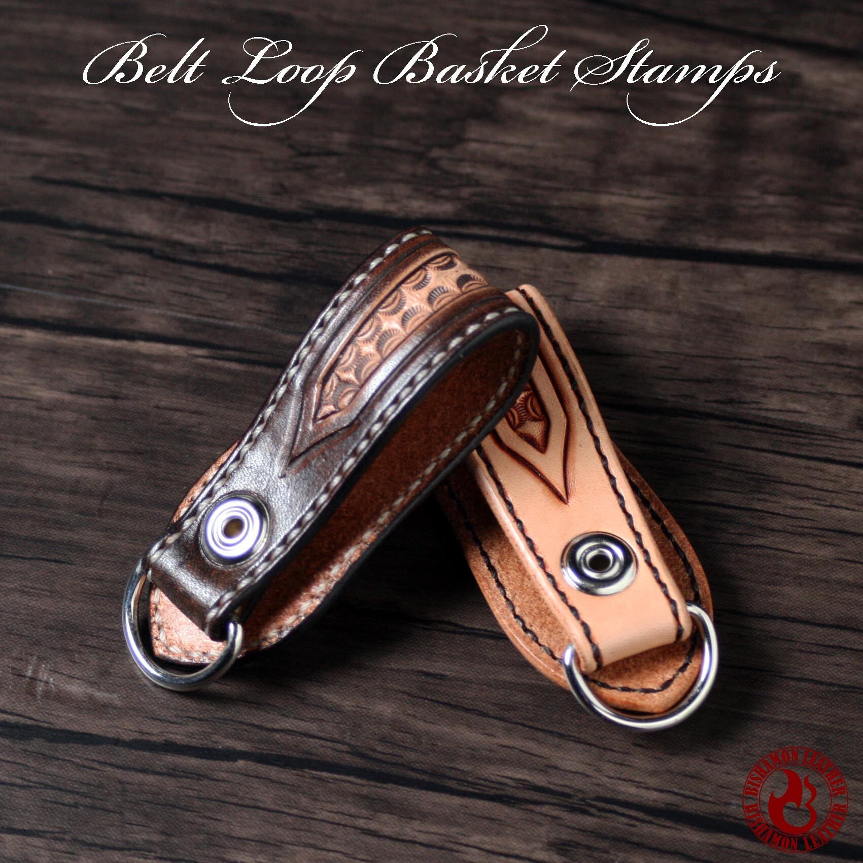 バスケットスタンプ仕上げのベルトループ(小)。ベルトに装着してウォレットロープやウォレットチェーン等を接続することが出来ます。カービングウォレットとの相性は抜群です。バスケットの刻印はひとつひとつ手作業で打ち込んでいます。色はライトブラウン、ダークブラウンの2色。ベルト巾は約45mmまで対応。コンチョには本物のアメリカ25セントイーグル硬貨を使用。素材は牛革(栃木レザー)を使用。